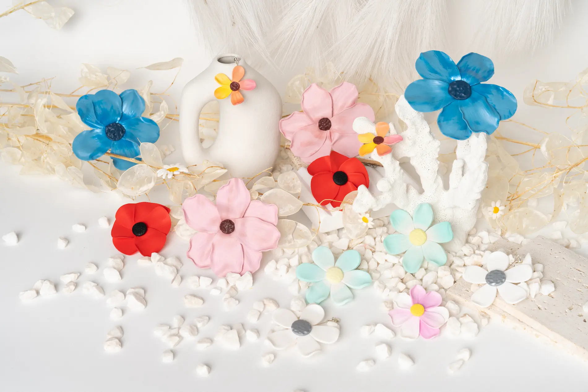 Diseñamos pendientes artesanales de plata hechos a mano, combinados con arcilla polimérica para crear piezas ultraligeras, cómodas y llenas de color.