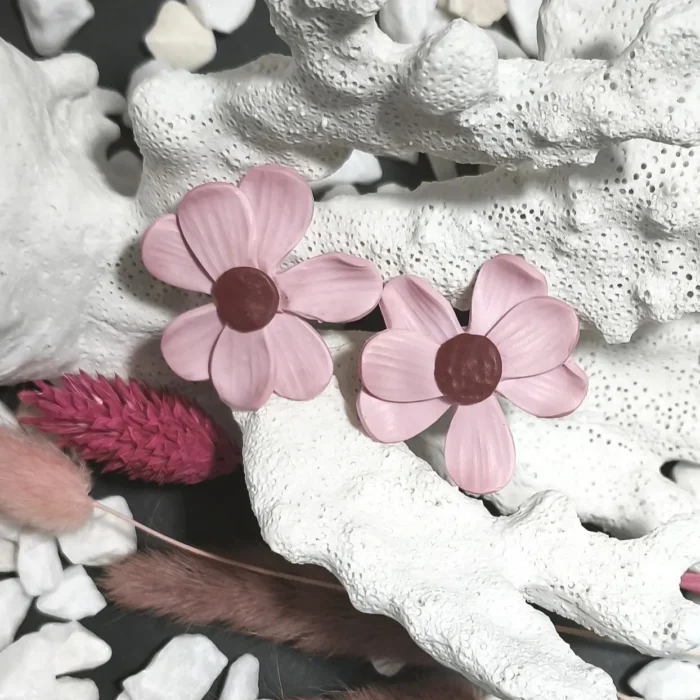 Pendientes flor rosa artesanales en versión mini, hechos a mano en arcilla polimérica y montados en plata de ley 925. Un diseño delicado, ligero y versátil para el día a día o para ocasiones especiales.