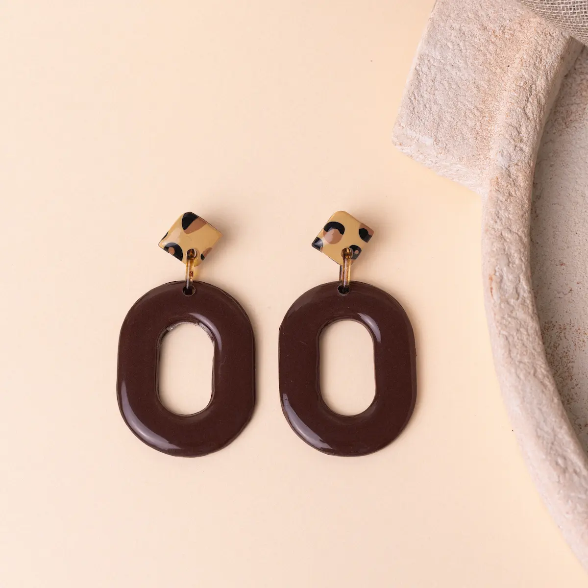 Los pendientes leopardo artesanal plata son una joya única que combina tendencia, estilo y artesanía de alta calidad. Cada par está elaborado totalmente a mano en arcilla polimérica, sin moldes ni transfer, asegurando que cada detalle del estampado leopardo sea exclusivo y diferente. Este diseño de doble pieza incluye una pieza pequeña pegada al lóbulo con estampado leopardo y una pieza grande marrón chocolate, creando un contraste elegante, moderno y sofisticado que realza cualquier look.