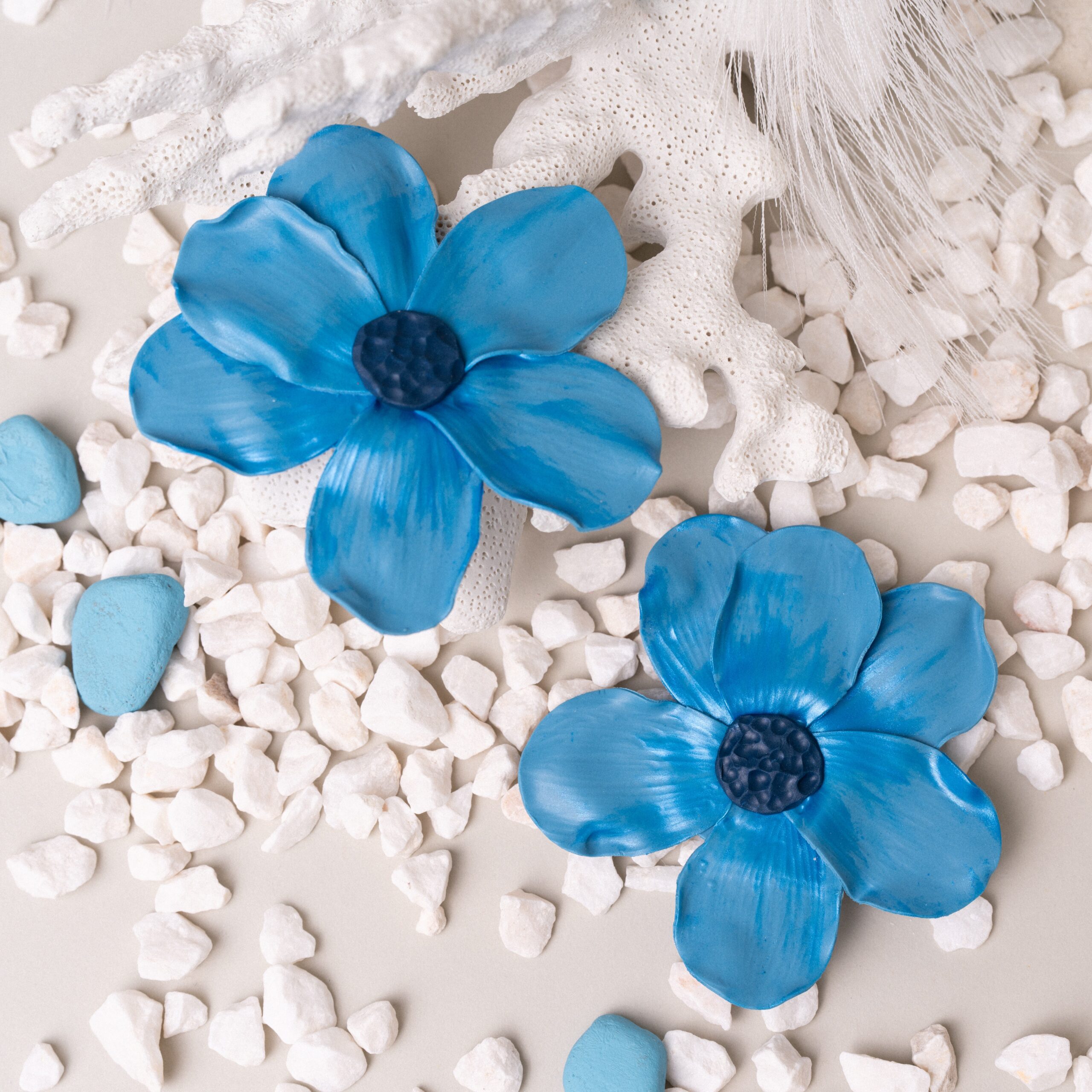 PENDIENTES ARTESANALES FLOR MAXI AZUL Plata de ley 925 y arcilla polimérica
